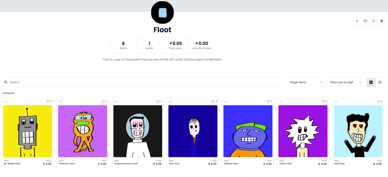 En mi caso, por ejemplo, cree una colección de varios NFT únicos (1/1) llamada Floot.